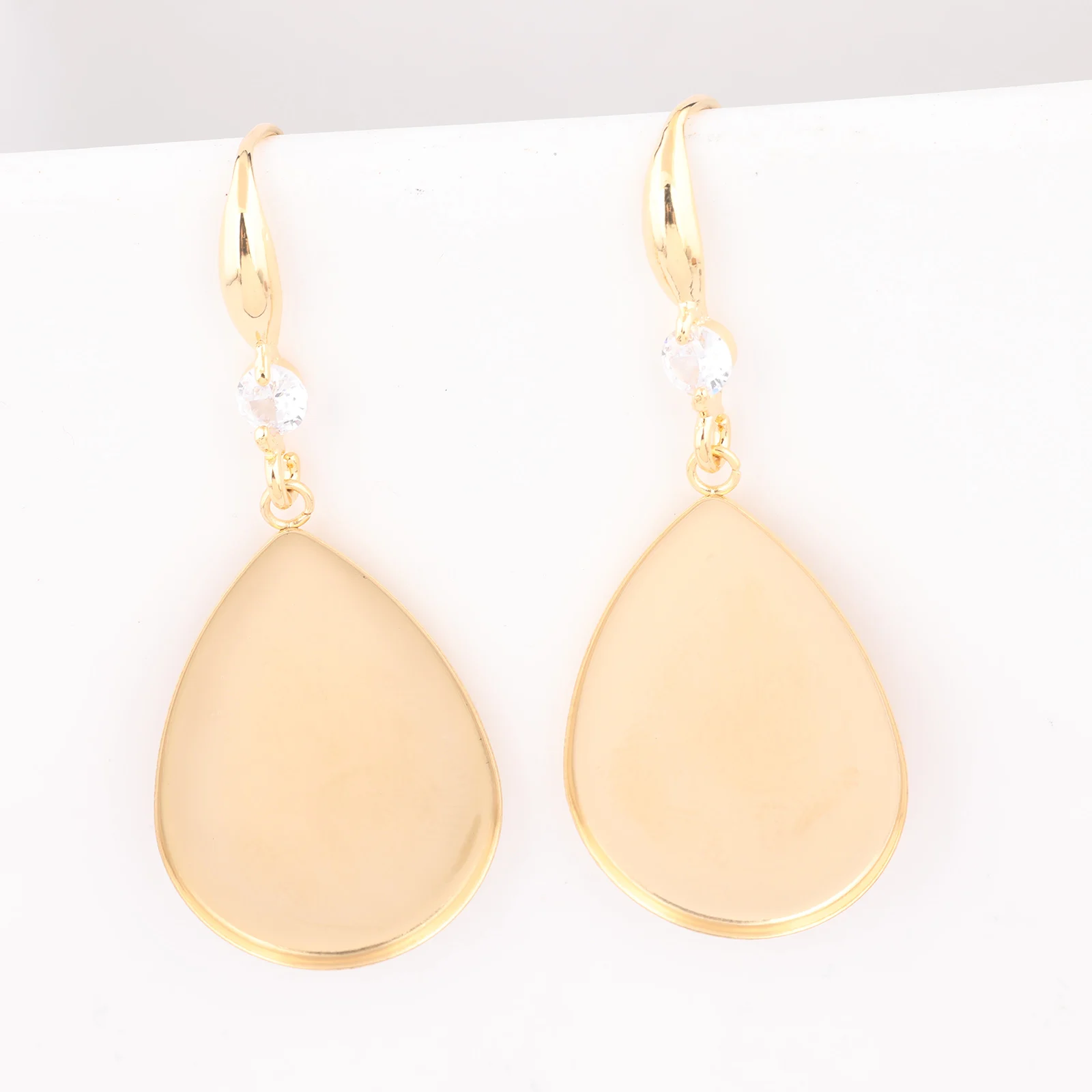 These gold-plated zircon stone earring hooks are crafted from high-quality stainless steel, offering durability and a polished finish. Measuring 18x25mm, they feature a teardrop cabochon base ideal for creative Auryessa jewelry projects. Lightweight and chemical-free, these versatile earring settings provide a secure and elegant foundation to showcase your unique designs with confidence. Perfect for both hobbyists and professionals seeking reliable earring findings.