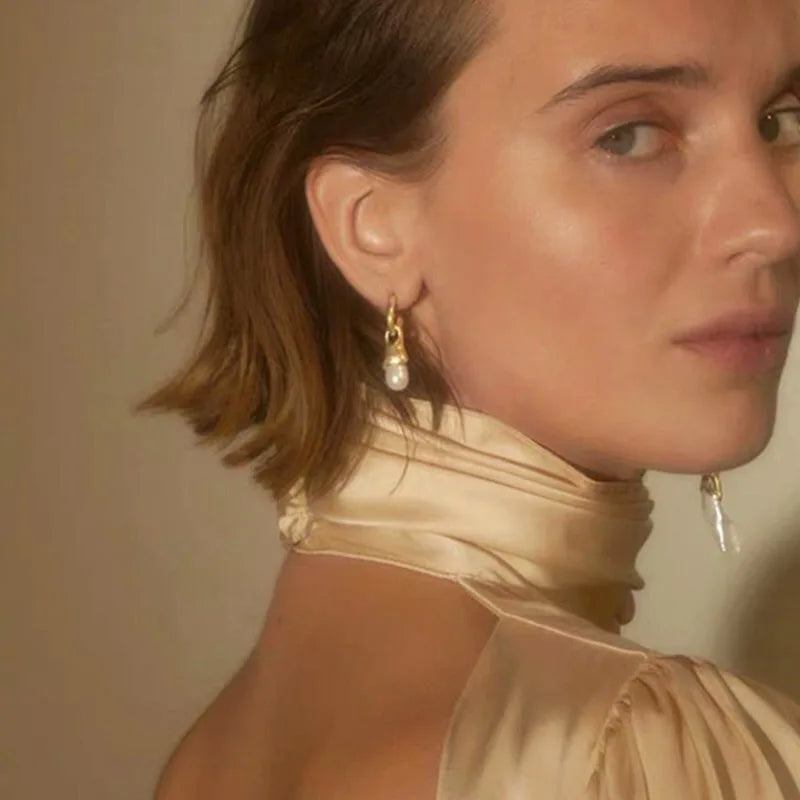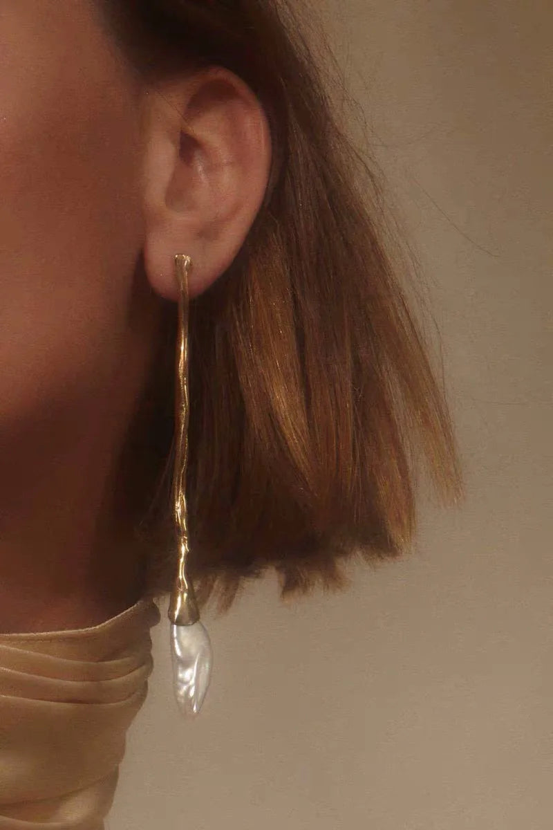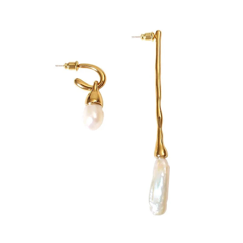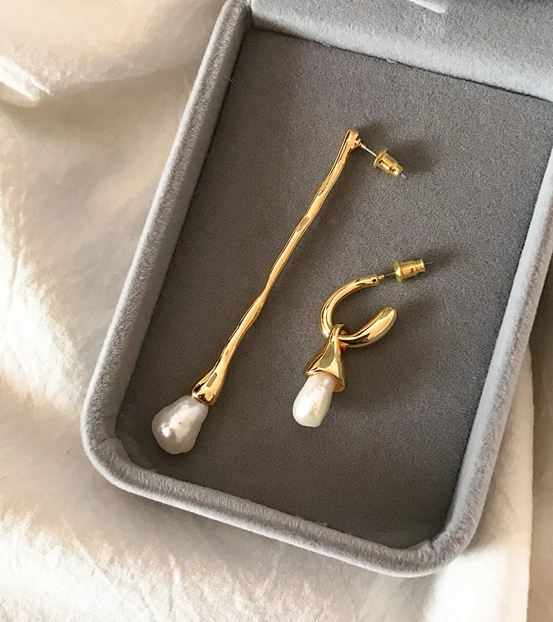 Brass With 18k Gold Iregular Real Baroque Pearl Earrings Women Jewelry Party T Show Gown Runway rare Korean Japan Trendy INS
