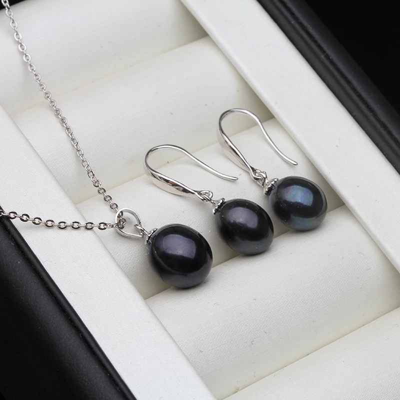 Bridal Natural Freshwater Set With Pearl Earrings And Necklace 925 Silver Jewelry Set Daughter Wife Mother Gift Whife Pink Black