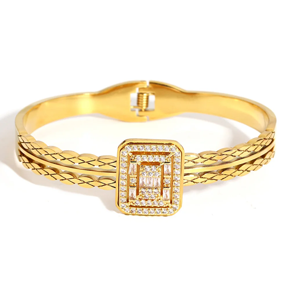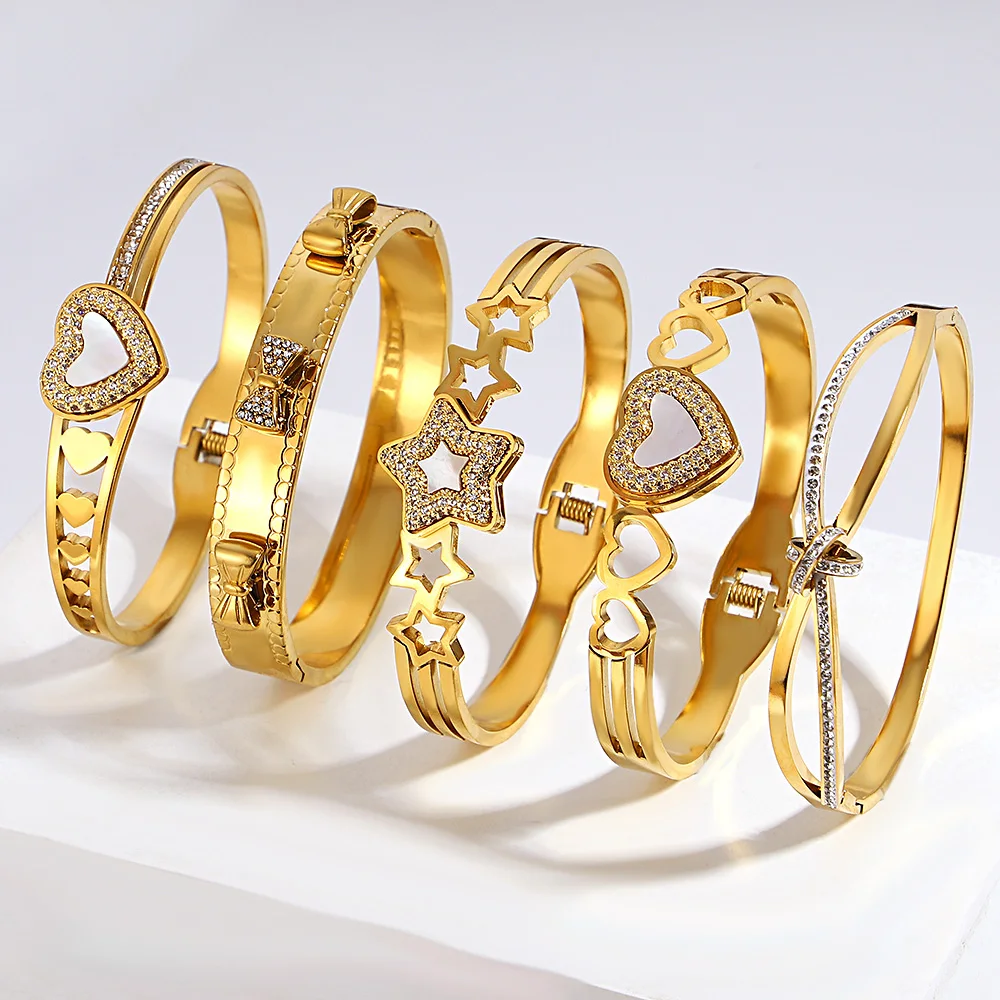 Chic Rhinestone Star Heart Bowknot Square Cuff Bracelet for Women Fashion Gold Plated Stainless Steel Bangles Jewelry Gifts