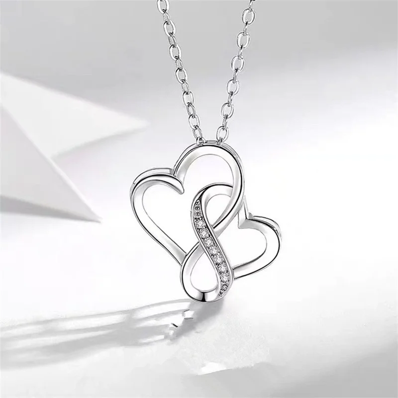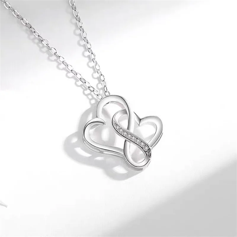 Fashion Double Heart Pendant For Lady Choker Necklace Jewelry Women 925 Sterling Silver Chain Necklace Female Anniversary Gift