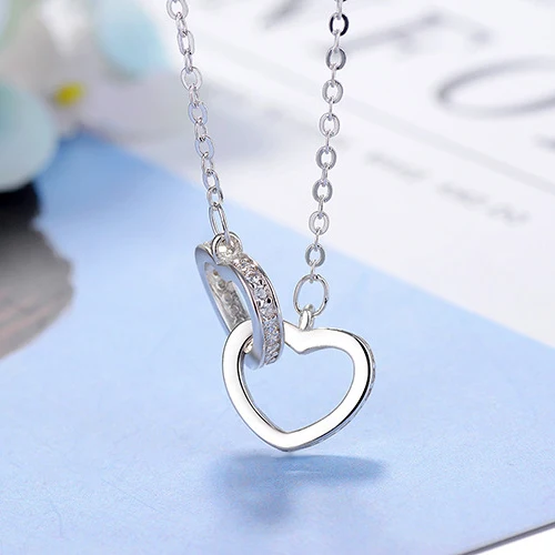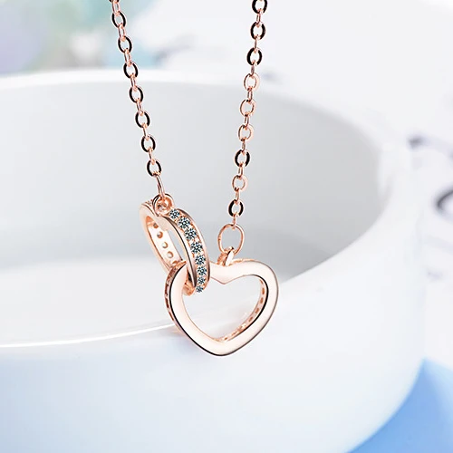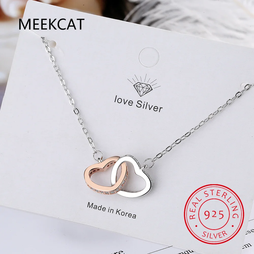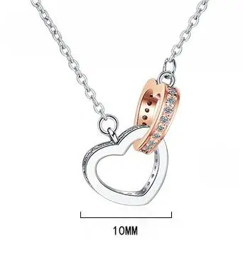 Fashion Double Love Heart Zircon Pendant Necklace 925 Sterling Silver Rose Gold Rhinestones Women's Jewelry Gift Hot Sale