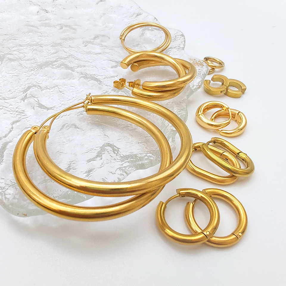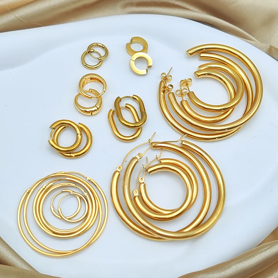 Fashion Gold Size Circle Earrings Women's Jewelry Accessories Classic Stainless Steel Earrings Wholesale