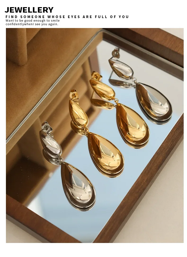 Fresh Style Waterdrop Pendant Titanium Steel Dangle Earrings for Girls Splicing Jewelry Ear Decorations