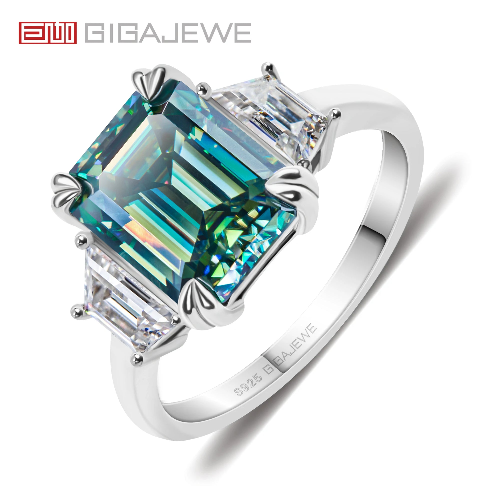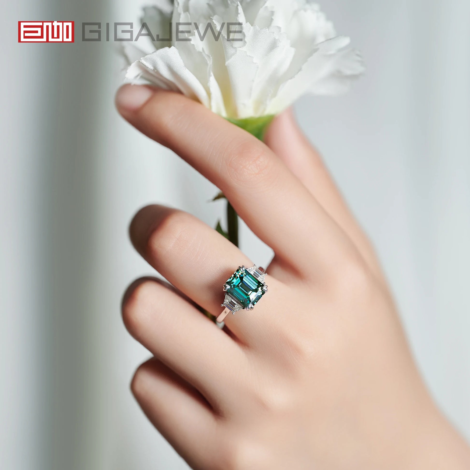 GIGAJEWE Moissanite Emerald Cut Natural Cyan 8X10mm 4.0ct S925 Silver Ring Diamond Test Passed Woman Wife Gift With GRA
