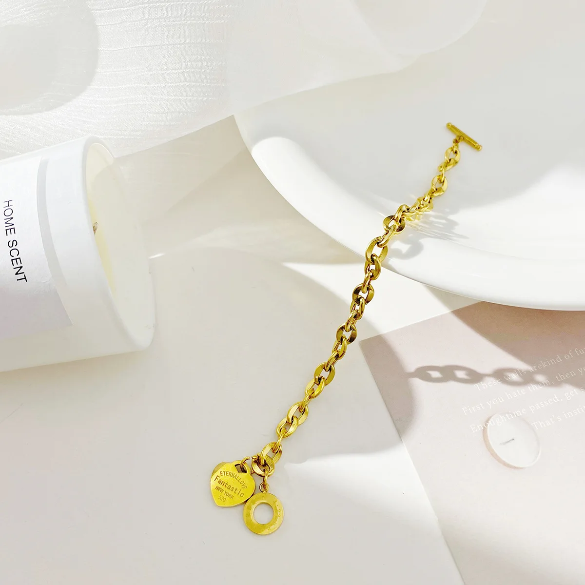 This elegant bracelet features a heart-shaped link design crafted from durable titanium steel with a sleek gold finish, ideal for professional or everyday wear. Made for women who appreciate refined office jewelry, it combines lasting material quality with fashionable appeal. Please note, slight color variations may occur due to lighting in photos. We encourage you to contact us with any concerns before leaving feedback, as we strive to ensure your complete satisfaction and offer discounts on future purchases.