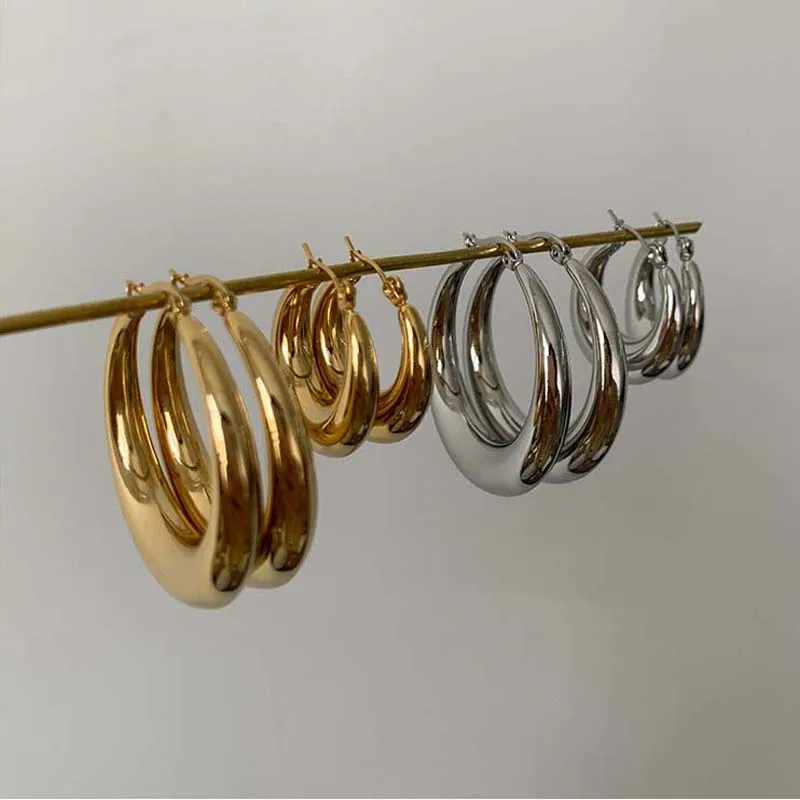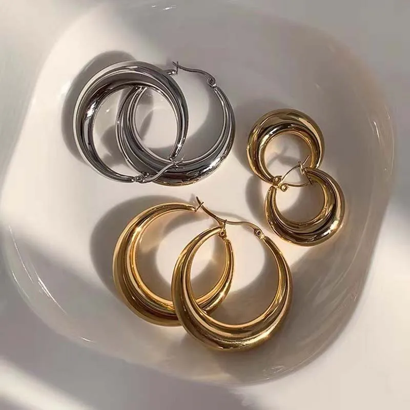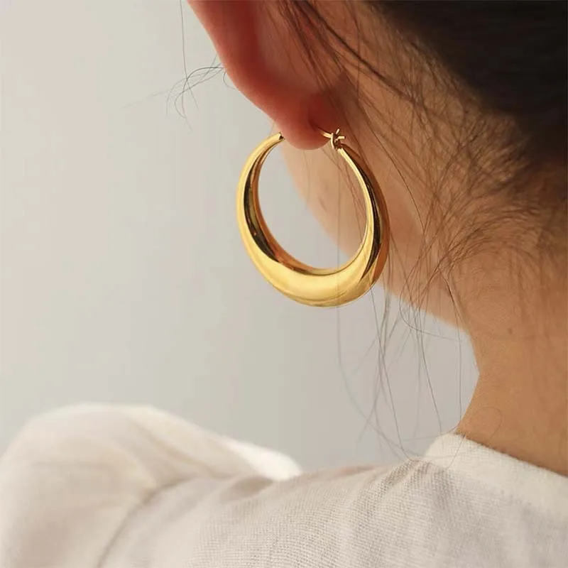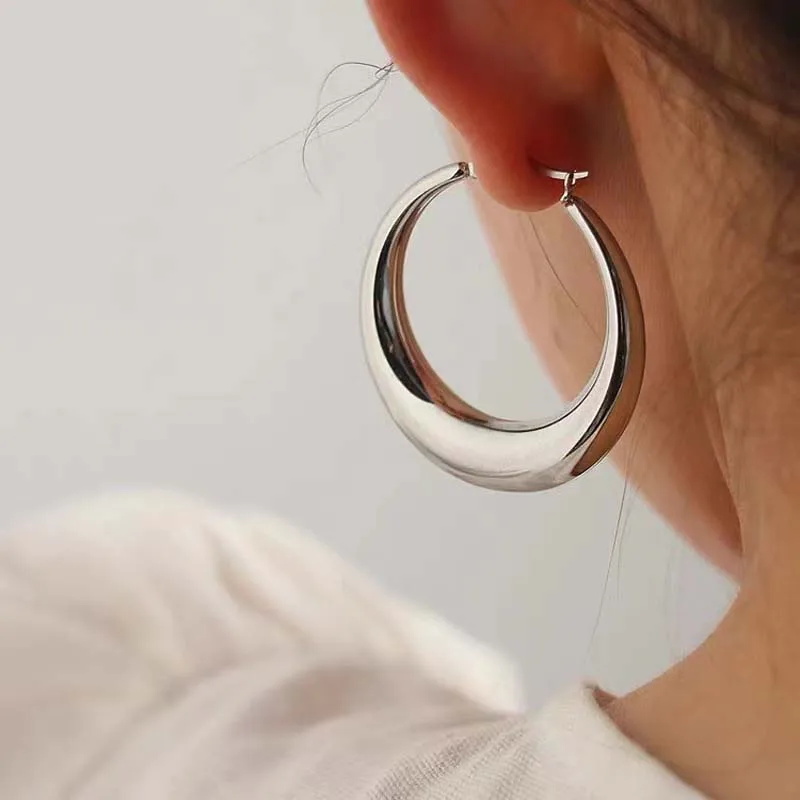 New Style 2024 Wholesale Smooth Exquisite Big Circle Hoop Earrings for Women Girl Wedding Party Large Stainless Steel Jewelry