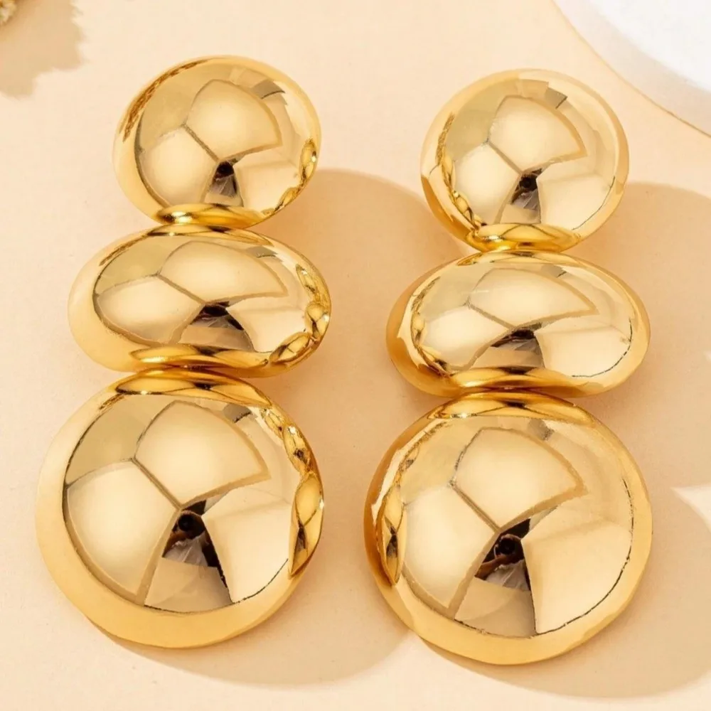 Retro Exaggerated Geometric Earrings Metal Golden Large Earrings Round Design Irregular Women Jewelry European American Style