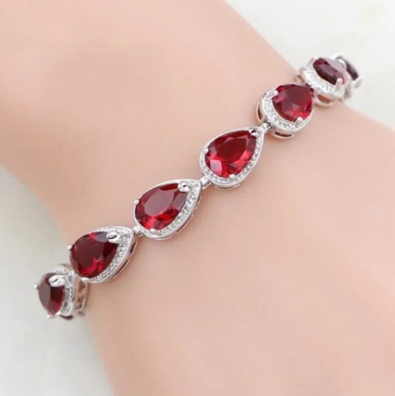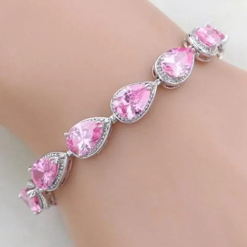 Shiny Teardrop Shape Zircon Crystal Tennis Bracelet for Women Fashion Elegant Banquet Party High Jewelry Girls Gift