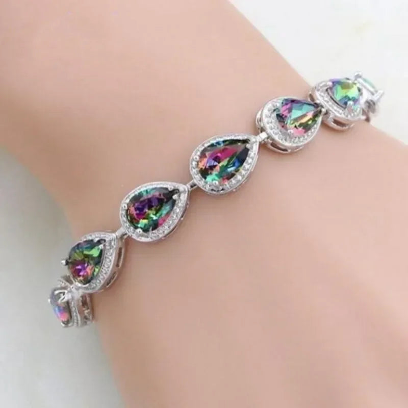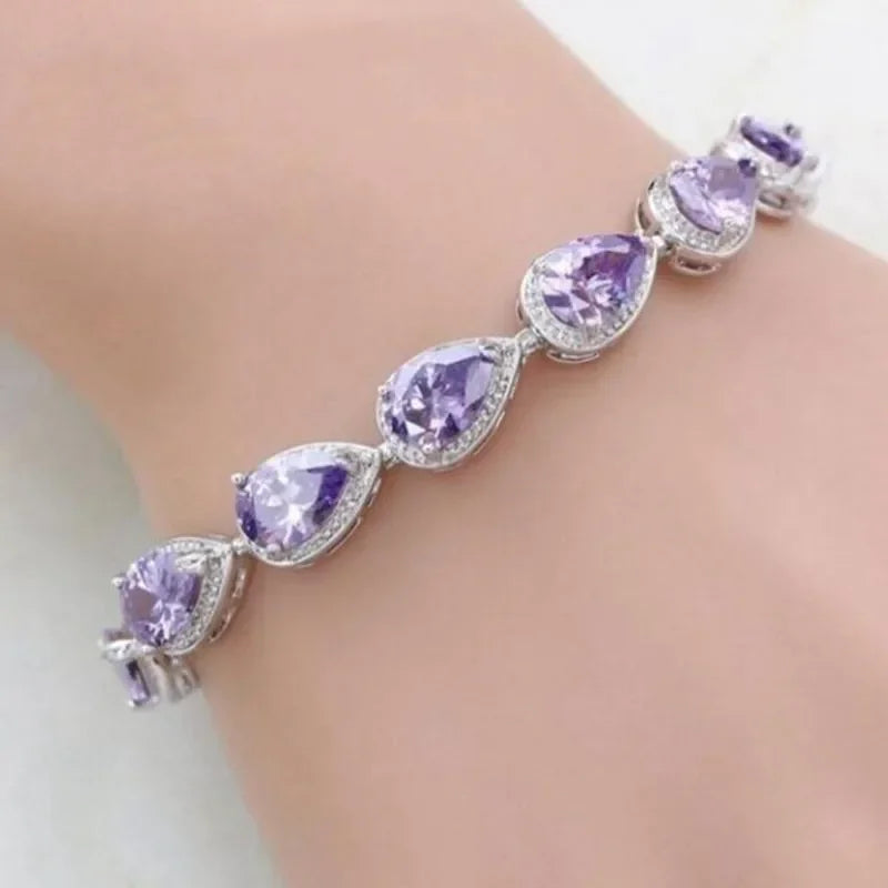 Elevate your elegance with this stunning teardrop-shaped zircon crystal tennis bracelet. Crafted from durable zinc alloy with a sleek link chain and secure hidden safety clasp, it combines trendy design with lasting comfort. Perfect for banquets, parties, or gifting, this sophisticated bracelet adds a graceful sparkle to any outfit.
